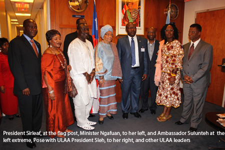 (UNITED NATIONS HEADQUARTERS, NEW YORK – Saturday, September 28, 2013) The Union of Liberian Associations in the Americas (ULAA), the umbrella group of Liberians and their various organizations in the Americas, has expressed their willingness to work with President Ellen Johnson Sirleaf and her government to accelerate the development of the country.