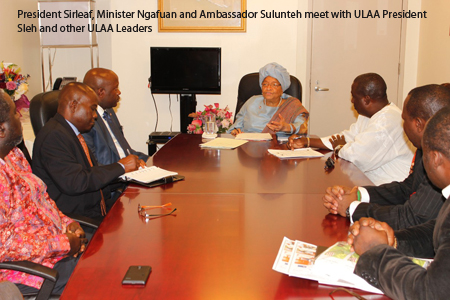 The Association also informed President Sirleaf that ULAA officials who visit Liberia find it difficult to meet with government officials, and it made an appeal for such officials to be more accessible to them.