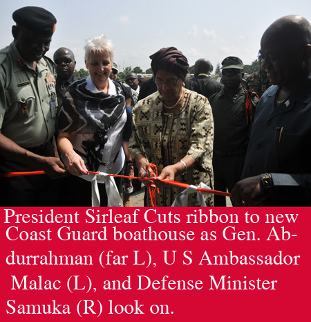 President Sirleaf Comissions New Liberian Coast Guard Boats![]() (MONROVIA, LIBERIA – Monday, February 10, 2014) The Commander-in-Chief of the Armed Forces of Liberia (AFL), President Ellen Johnson Sirleaf, has commissioned two Defender boats to be used by the Liberian Coast Guard. The commissioning ceremony is part activities marking the 57th Anniversary of Armed Forces Day. |