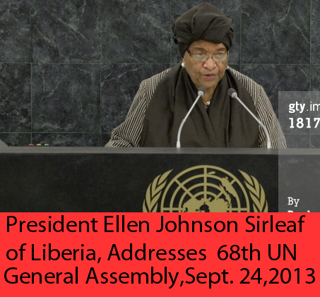 President Sirleaf Addresses 68th Session of UN General Assembly; Urges Nations to Commit to New Global Partnership that Promotes Economic and Social Transformation![]() |