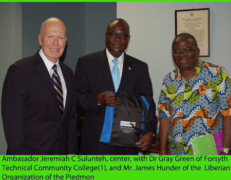 Ambassador Sulunteh Pays Official Visit to North Carolina![]() Washington, D.C. – June 5, 2013: The Ambassador of the Republic of Liberia to the United States, H.E. Jeremiah C. Sulunteh, paid a four-day official visit to the State of North Carolina from Wednesday – Saturday, May 29-June 1, 2013. |